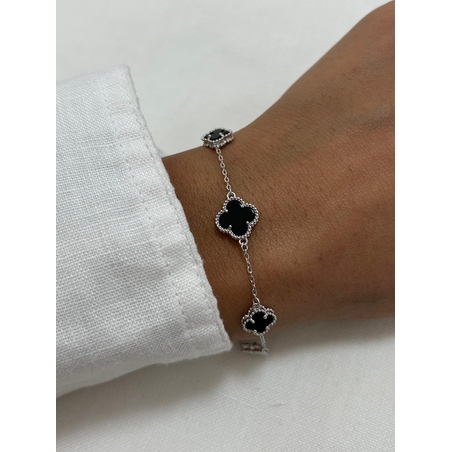 צמיד כסף 925 בציפוי רוז גולד - 5 פרחים שחורים